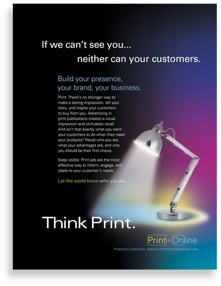 In the August 2014 issue of Photonics Spectra, a Smith Miller Moore-designed ad won the top honors in both categories of “Readership/Recognition” and “Most Attention-Getting” advertisements. A second SMM ad scored #16 out of 71 ads surveyed in the “Most Attention-Getting” category.